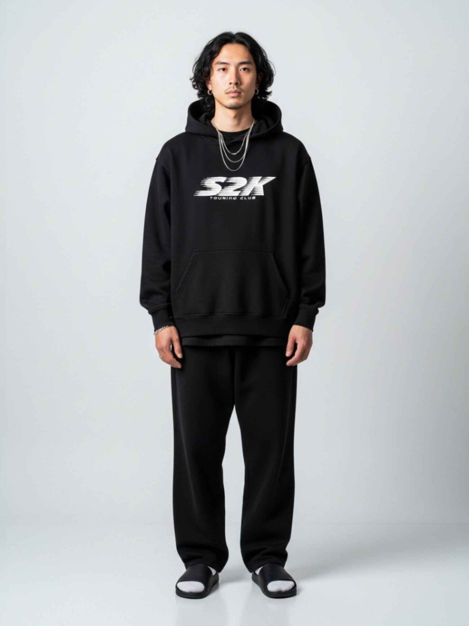 The S2K Touring Club hoodie is cut from a premium 350 GSM heavyweight fleece with an intentionally oversized fit. Relaxed through the body with dropped shoulders and room to layer. Thick enough to feel substantial. Soft enough to live in. Built to hold its shape over time.